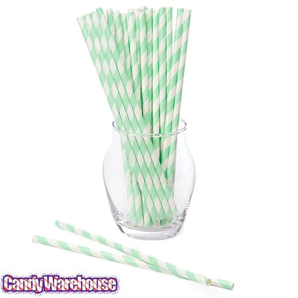 Paper 7.75-Inch Drinking Straws - Mint Green Stripes: 25-Piece Pack