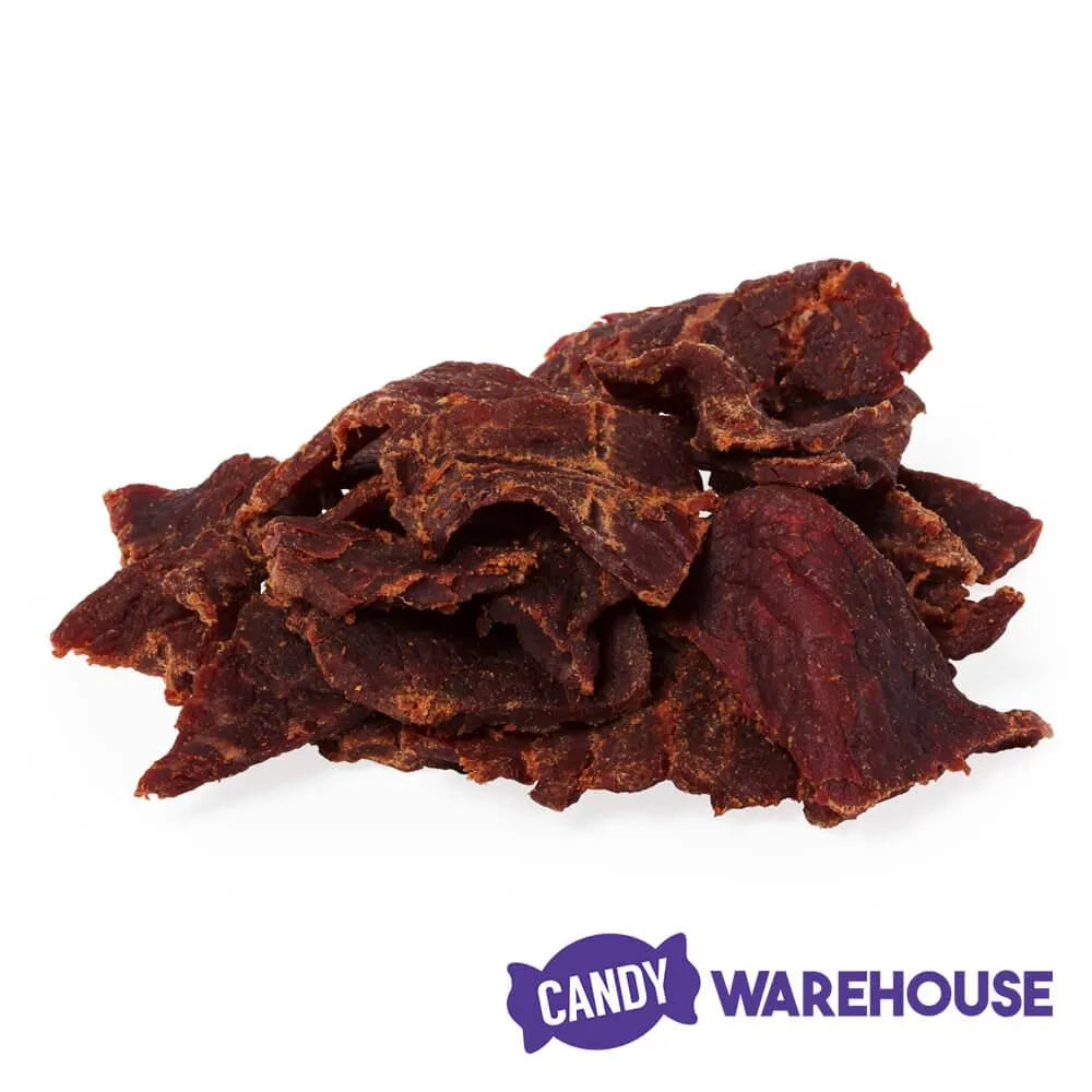 Trust us when we say that Old Trapper teriyaki beef jerky is the highest-quality, best-value meat snack available. Striking the perfect balance of salty and sweet, this mouthwatering teriyaki jerky is lovingly crafted from lean strips of 100% top round steak marinated in soy sauce and apple cider vinegar. Add a proprietary blend of spices, real wood chip smoking using technology imported from Germany, and you've got a tender, juicy, and unbelievably delicious anytime snack. You know you're going to finish the whole 10-ounce bag in one sitting. Lucky for you, Candy Warehouse stocks Old Trapper beef jerky in bulk. Grab this 12-piece box of individual bags with a stay-fresh seal so you've always got quick access to a satisfying Old Trapper beef jerky snack on the run.
