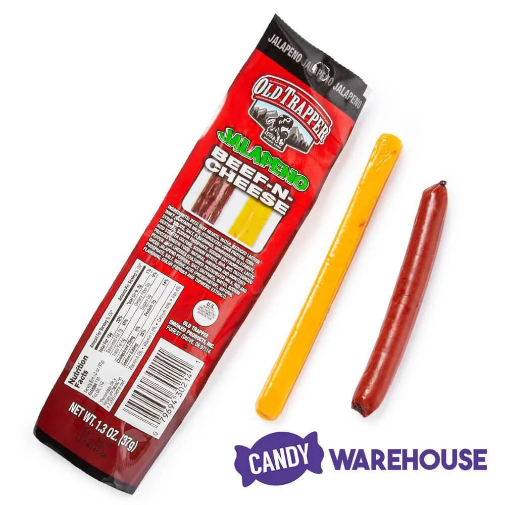 Deal a double blow to between-meal hunger with Old Trapper jalapeno beef-n-cheese jerky. A mouthwatering smoked beef stick amped up with spicy jalapeno is paired with a creamy slice of pepper Jack cheese to create a snacking match made in heaven. Individually wrapped and perfectly portioned, an Old Trapper beef and cheese stick is ideal for on-the-go munching when you need to refuel but can’t stop. Take the packets of beef jerky and cheese in this 14-piece box along on family road trips, or tuck them into backpacks for after-school snacking. Each 1.3-ounce serving provides 7 grams of protein and 150 calories for a diet-friendly pick-me-up. Be sure to shop Candy Warehouse for more high-quality, great-value meat snacks from Old Trapper. We’ve done all the hunting for you.