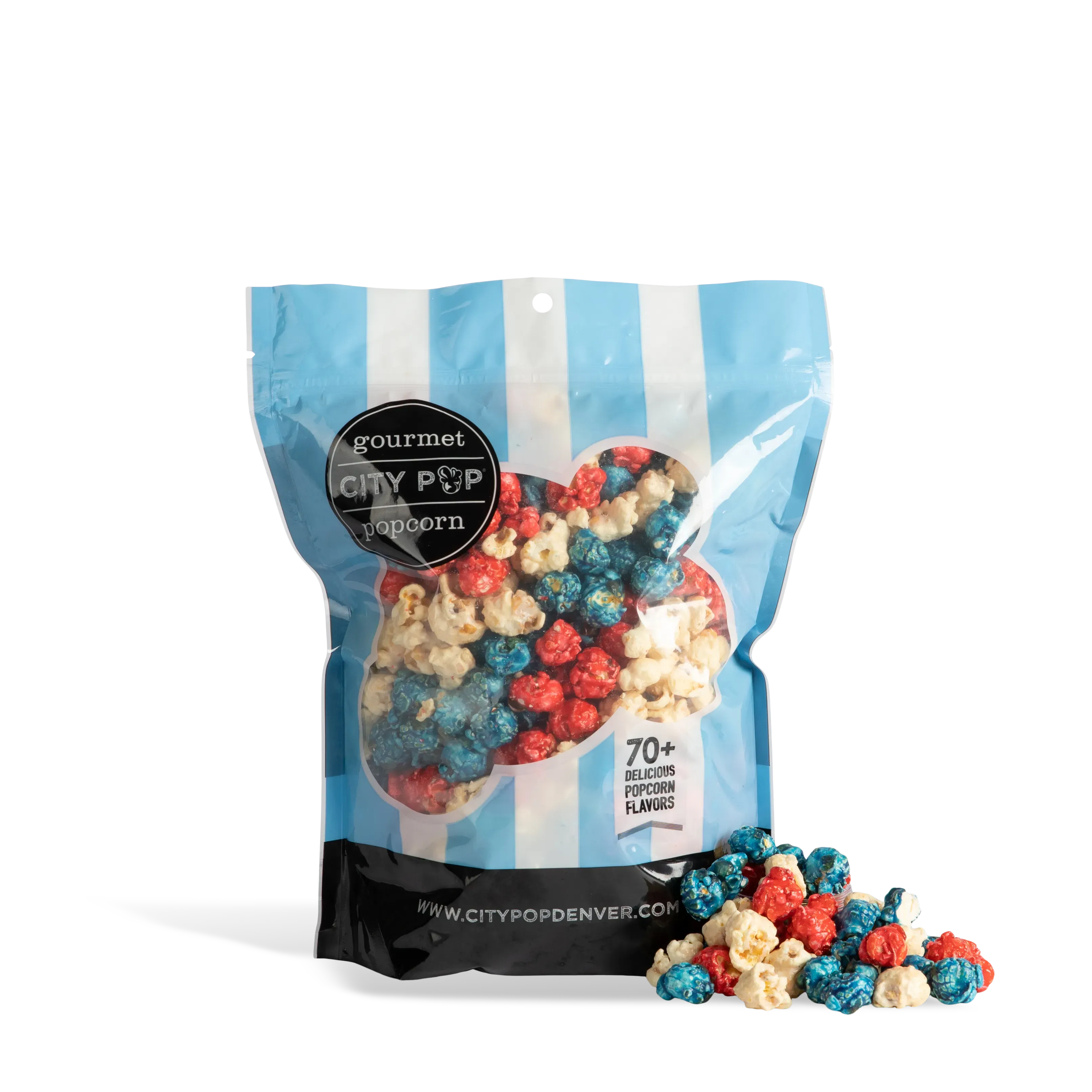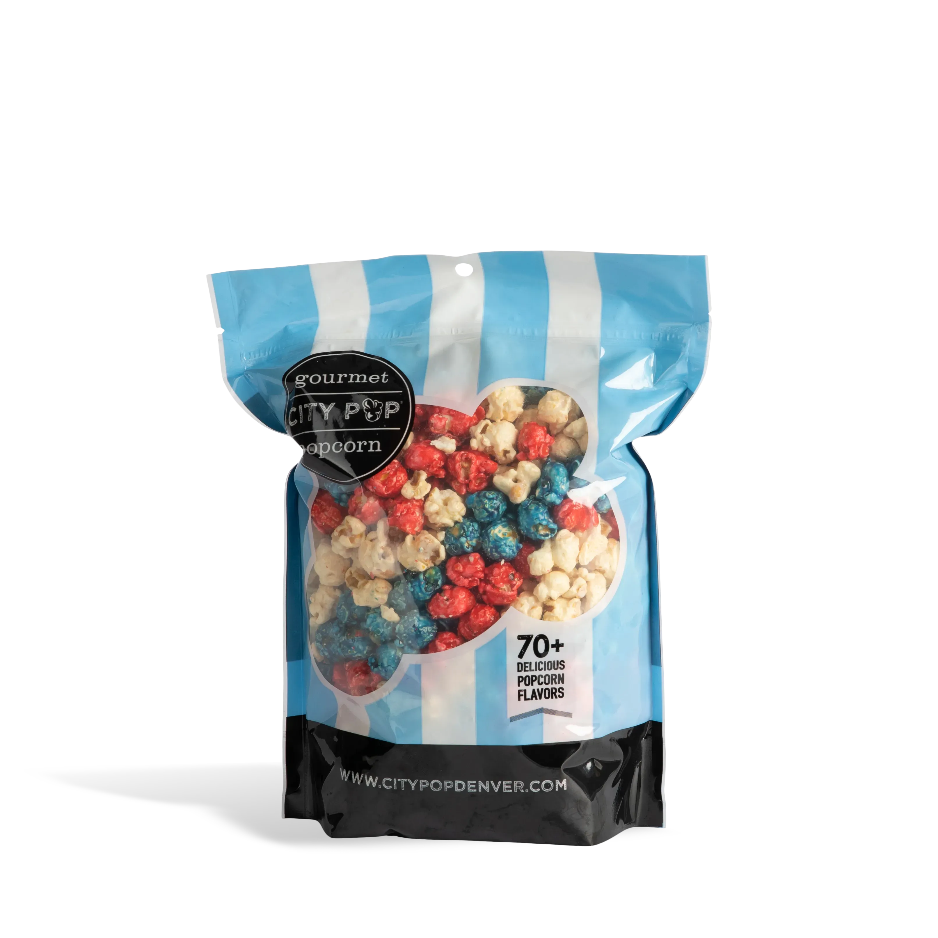 Equally important, our dedicated team has expertly crafted a recipe that ensures a satisfying crunch and bursts of flavor in every mouthful. Additionally, the light and fluffy popcorn is adorned with a colorful mix of blue, white, and red, reminiscent of the American flag.