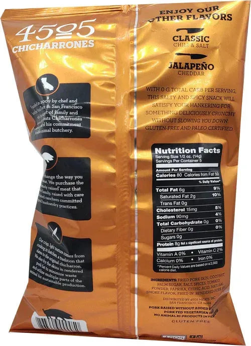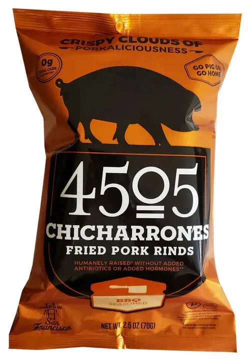 Each bag of BBQ Fried Pork Rinds contains 3.5oz of delicious, crunchy goodness.