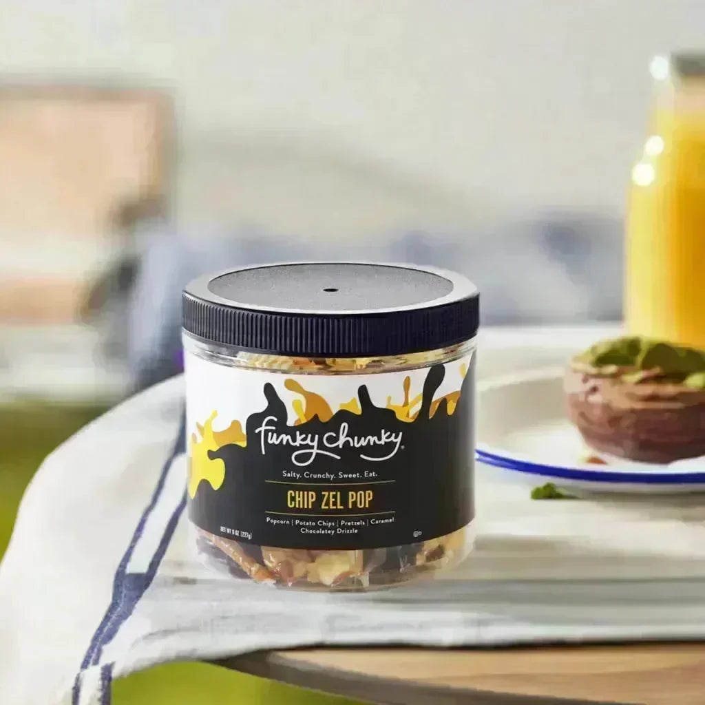 Great to give as a gift! All your cravings satisfied in one bite! Sweet and salty, chewy, crispy and crunchy, Chip Zel Pop gourmet popcorn is an incredible marriage of flavors that will keep you wanting more. Made with crisp potato chips, pretzel sticks, and buttery caramel popcorn - mixed together and drizzled with thick caramel and dark, milk and white chocolatey goodness.