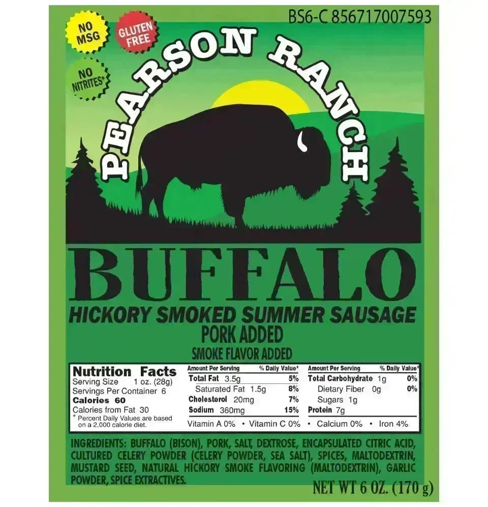Six ounces of the richest, tastiest summer sausage made with premium buffalo meat you’ll ever eat. It comes ready to slice and serve. The perfect addition to your cheese and cracker plate. Or get creative and add it to your pasta dish or an omelet.