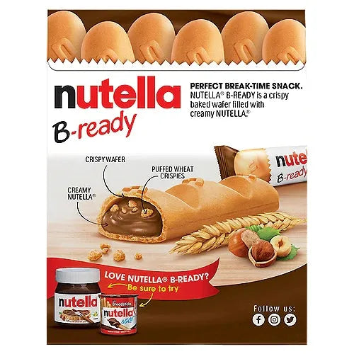Grab your Nutella B-Ready now and enjoy the perfect crunch! Each pack contains 2 Nutella B-Ready wafers.