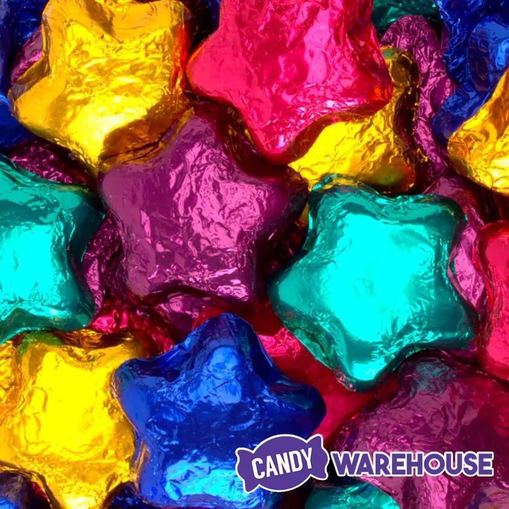 Bag contains 5 pounds of Assorted Colors Foil Wrapped Dark Chocolate Stars Candy.