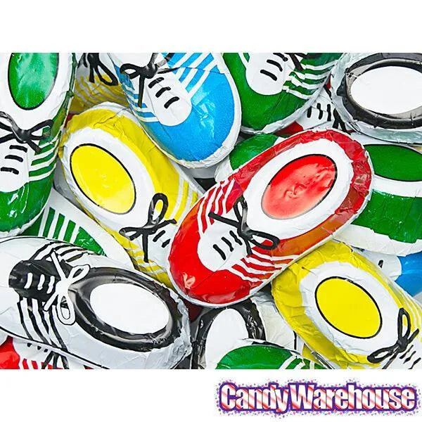 No odor-eaters required with these colorful foiled milk chocolate sneakers... cute sneaker treats that smell sweet and chocolatey, and taste even better. Designs include five bright colors: Red, Blue, Yellow, Green, and White.