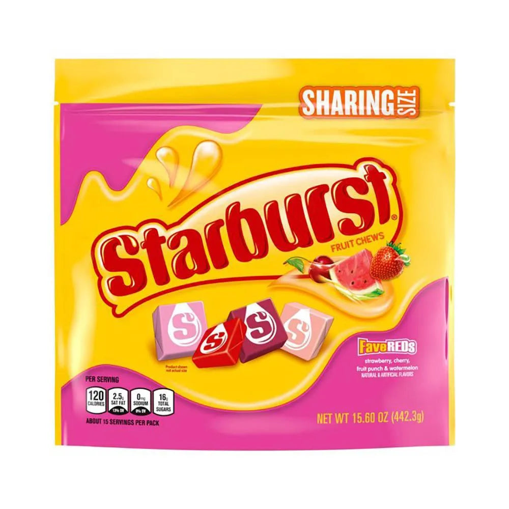 Bag contains 15.6 ounces of FaveREDS Starburst Fruit Chews Candy... that's about 90 pieces.