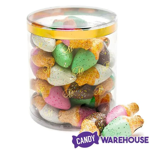 Tub contains 45 Foil Wrapped Milk Chocolate Ice Cream Cones.