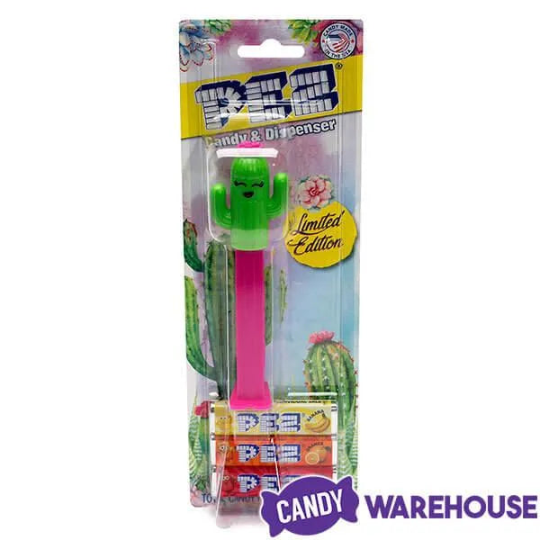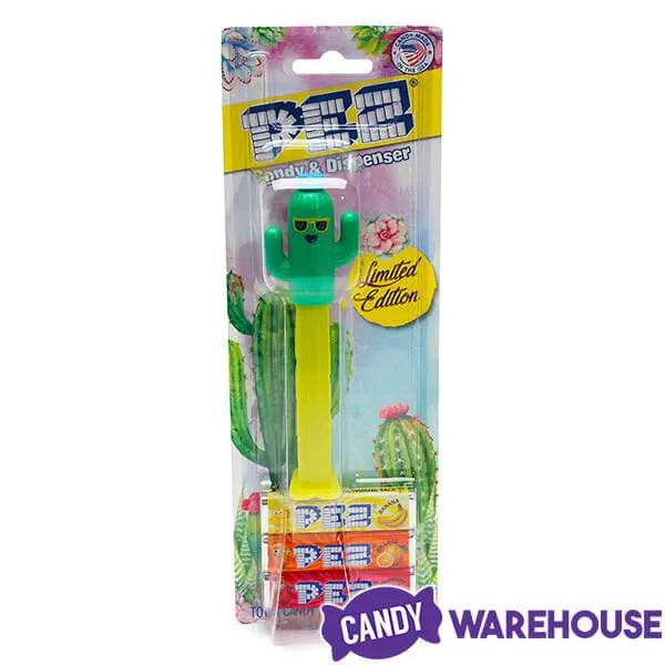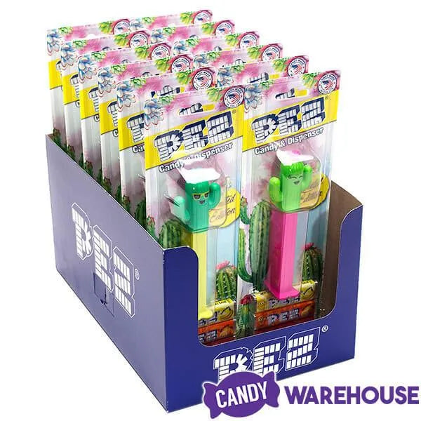 Desert flora fans have something to really go wild over now that the Cactus PEZ dispenser candy packs have arrived. These spiny succulents of the Southwest stand up to the harshest conditions with aplomb and still manage to pop out sweet, bite-size bursts of fruity flavor with a smile. PEZ cactus dispensers are perfect for your cowboy party or a backyard pool party. This 12-piece display box contains six each of the two cheerfully colored cactus characters in a clear package that includes three candy refills. Add these cute limited edition cacti to your PEZ candy collection, and remember that Candy Warehouse stocks a large selection of officially licensed PEZ dispensers and all of your favorite refill cartridge flavors. Our PEZ candy collection ranges from historical classics to the hottest new releases.