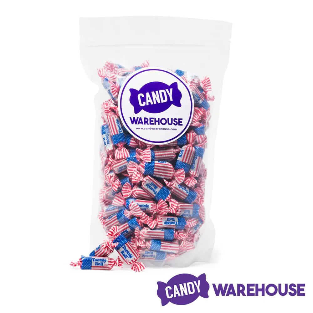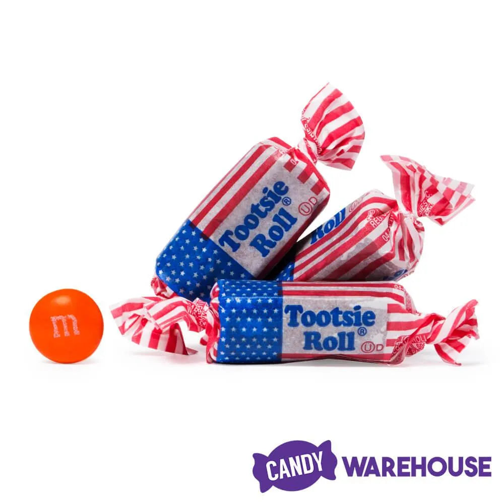 Put your patriotism on display any time of year with Tootsie Roll American flag midgees. This 2-pound bag of deliciously chewy 4th of July candy is perfect for family picnics, summer pool parties, trade shows, and turn-out-the-vote rallies. Toss it from your float in the community's annual holiday parade. What's more classically American than the delectable Tootsie Rolls chocolate wrapped up in the country's stars and stripes? Tootsie Roll was the first individually wrapped penny candy in America, and today it's an international icon. Count on Candy Warehouse to get these Tootsie Roll American flag midgees to you fresh and fast, and check out our extensive selection of Tootsie Roll products in all your favorite flavors and sizes.