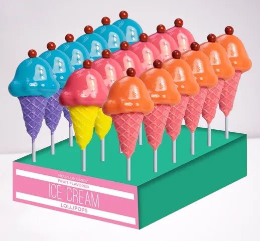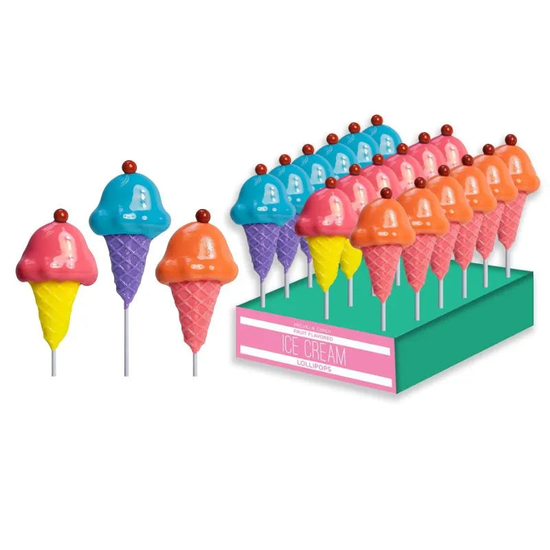 Eye-Catching Design: These lollipops feature a whimsical hard candy ice cream cone shape, beautifully dipped in a complementary flavored candy, topped with a vibrant red candy “cherry” for an appealing look.