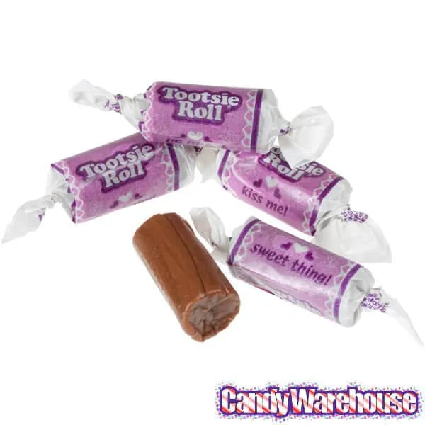 Bag contains 12 ounces of Purple Tootsie Rolls Valentine Candy... that's about 50 pieces.
