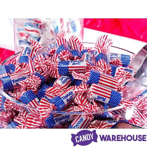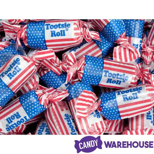 O beautiful for spacious skies, for amber rolls of chewy chocolate candy. Behold the glory of American Flag Tootsie Rolls Candy! This patriotic version of the iconic penny candy is a perfect accessory for the Fourth of July or your political rally. And for celebrating a safe return home from abroad, even if you just spent the day in Toronto. Each Midgee features the classic Tootsie Roll flavor wrapped in the red, white and blue of Ol' Glory. These colors don't run, but that doesn’t mean they aren't fun.