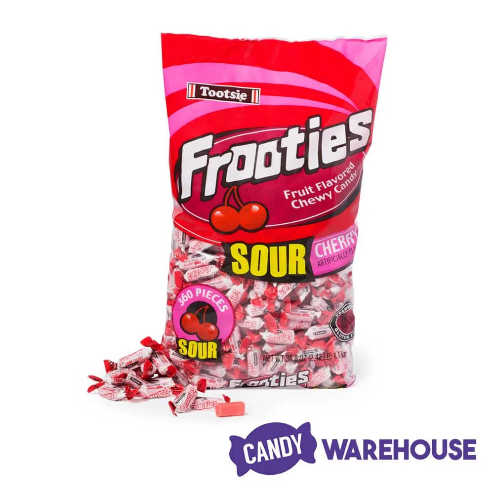 Chomp on chewy candy bursting with juicy fruit flavor when you treat your mouth to Tootsie Roll Frooties sour cherry candy. Deliciously tart and soft in texture, sour-cherry-flavored Tootsie Rolls tantalize taste buds with their orchard-ripe goodness. Individually wrapped for freshness and convenience, these bright red fruit Tootsie Rolls can be the stars of your Fourth of July parade, Valentine’s Day candy buffet, Christmas stockings, and birthday pinata. A value-priced 360-piece bag from Candy Warehouse saves you time and money while giving you plenty of sour cherry Frooties to share with the special people in your life. Pack them in lunches and stash them in purses for a sweet and chewy bite-sized treat on the run.
