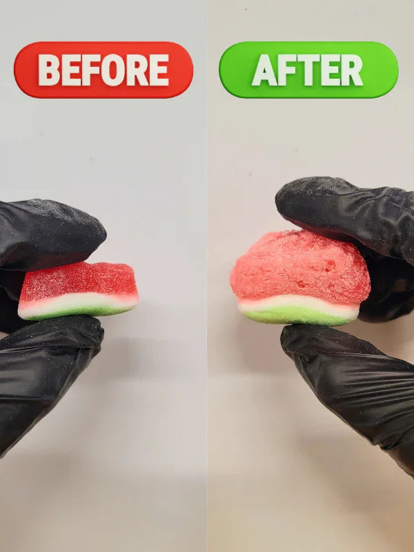 Enjoy a refreshing twist on a classic fruity favorite with freeze dried watermelon gummies candy. These chewy watermelon treats are transformed into light, airy bites with a crisp texture and a sweet, tangy flavor in every crunchy piece.