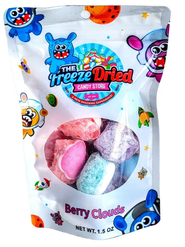 Take your candy experience to new heights with freeze dried Berry Clouds gummy candy. These classic gummy treats are transformed into light, airy bites with a crisp texture that delivers bold berry flavor in every crunchy piece.