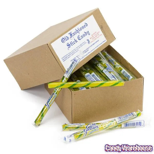 Box contains 80 wrapped Pineapple Gilliam Old Fashioned Hard Candy Sticks.