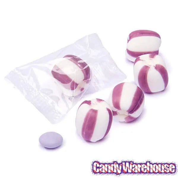 Bite into one of these cool and classy candies to feel the soft and satisfying crumble, then experience the rush of huckleberry flavor as it paints your palate with a sweetly innovative candy experience! A new take on the classic melt-a-way treat, these delectable, striped purple confections are sure to bring much jubilation to your next gathering.