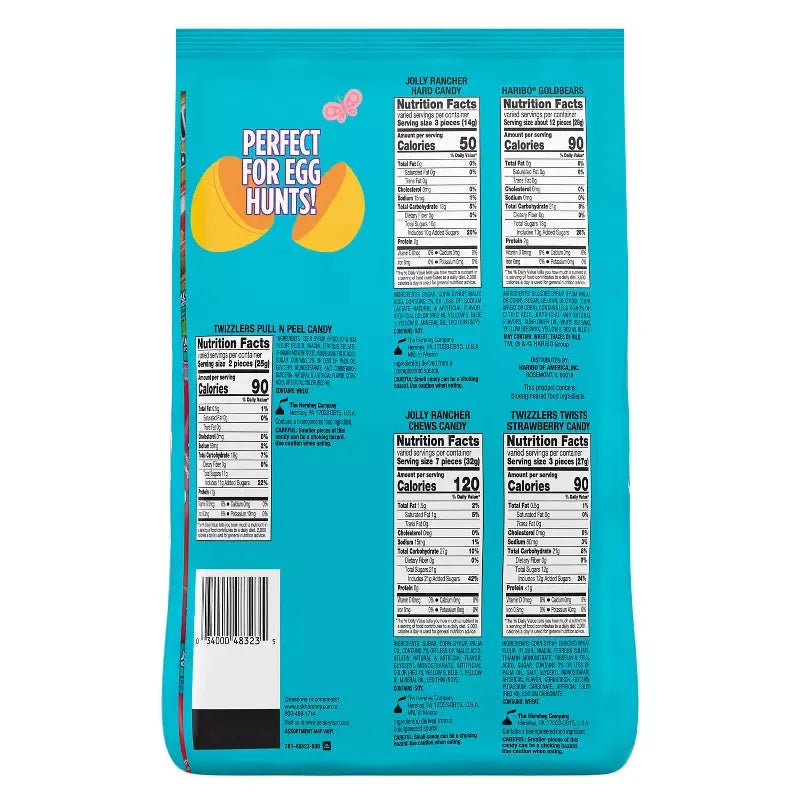 Make your Easter celebrations even sweeter with this 165-piece bulk variety bag of JOLLY RANCHER, TWIZZLERS, and HARIBO assorted fruit-flavored candy! Packed with five crowd-pleasing favorites, this festive mix is perfect for Easter egg hunts, candy bowls, party favors, and springtime celebrations.
