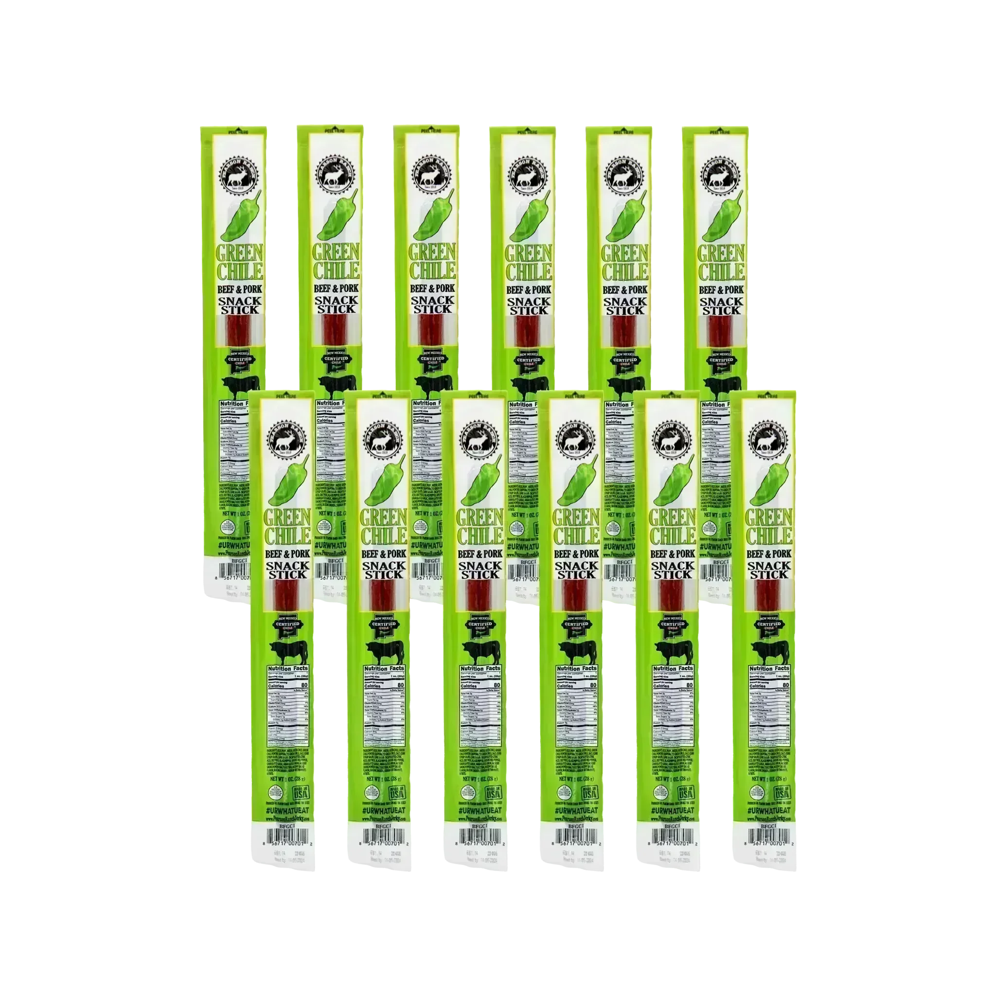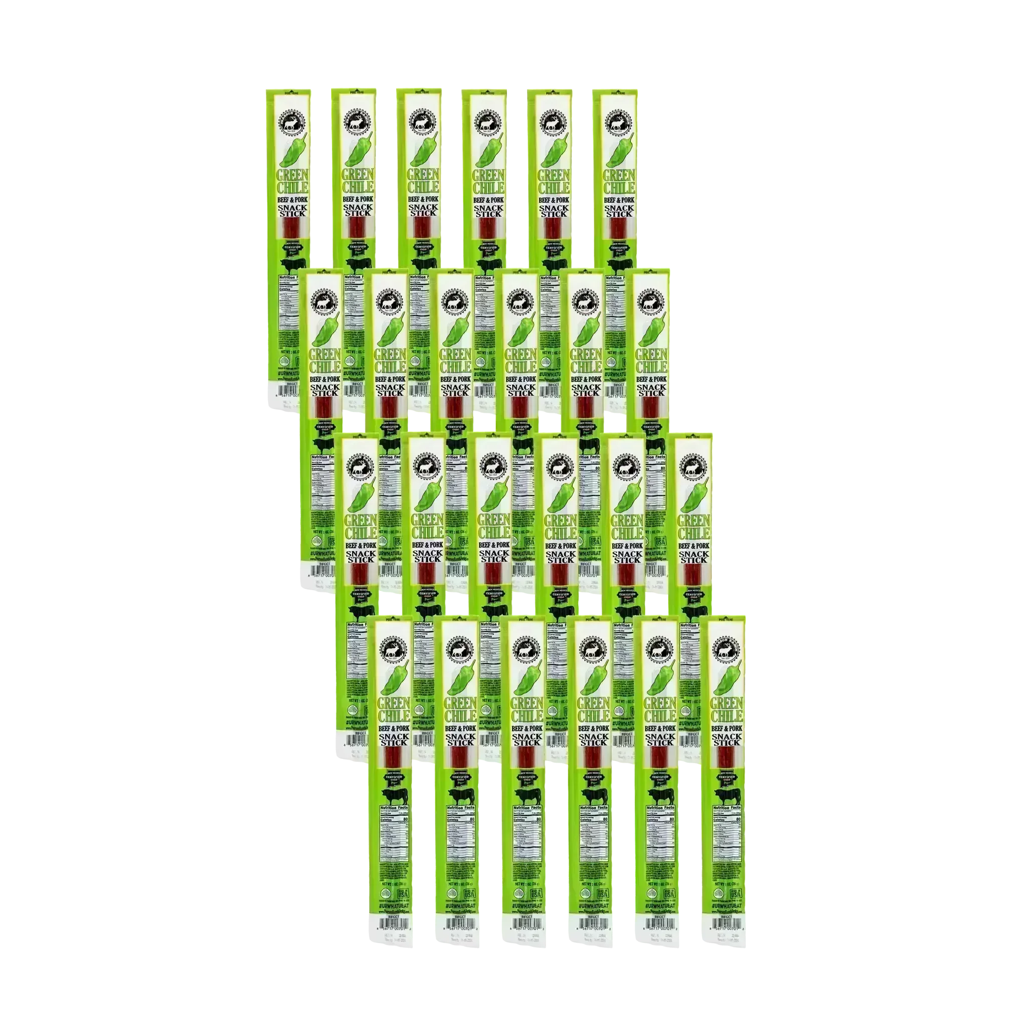 Looking for that distinctive Southwest Green Chili flavor. This stick is the one for you. Our Green Chile Beef & Pork Snack Stick is made with authentic New Mexico Green Chile and full of flavor and spice. (1 oz)