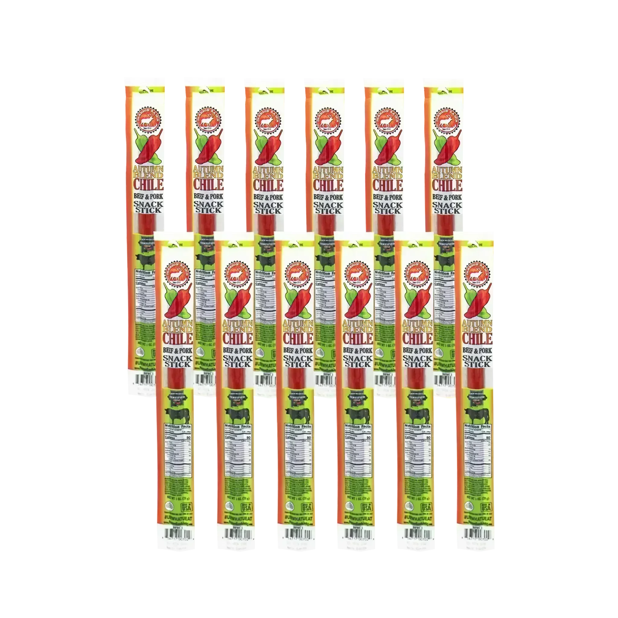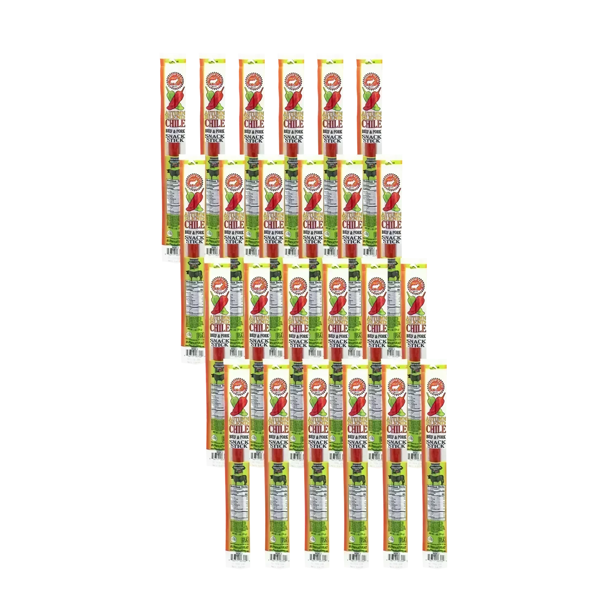 Our new Autumn Blend Chile Beef & Pork Snack Stick is made with authentic New Mexico Green & Red Chilies and full of mouthwatering flavor and spice. (1 oz)
