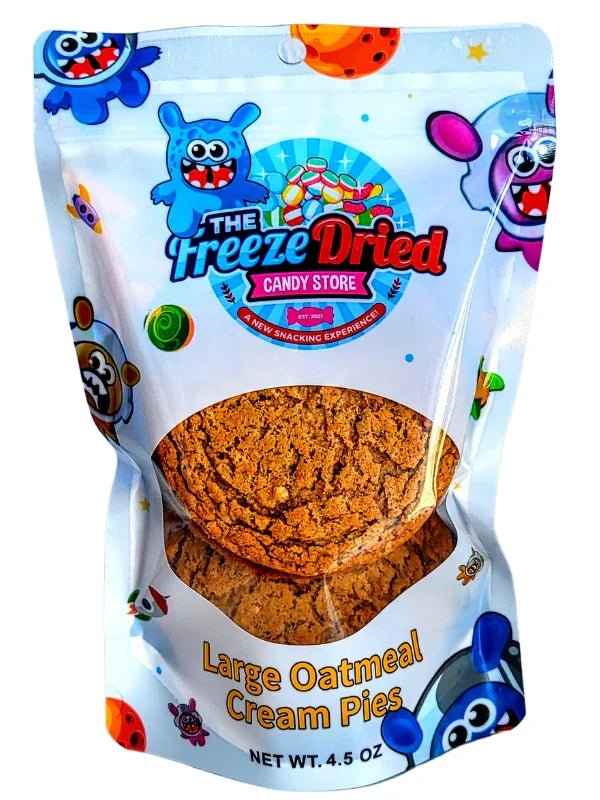 Enjoy a nostalgic favorite with a crunchy twist with freeze dried Large Cream Pie Sandwiches candy. These classic oatmeal cookie sandwiches with a creamy filling are transformed into light, airy treats with a crisp texture and sweet, satisfying flavor in every bite.