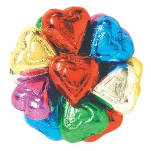 Your heart will melt when you taste these scrumptious heart-shaped chocolates wrapped in decorative metallic foils! All hearts are made of rich milk chocolate!
