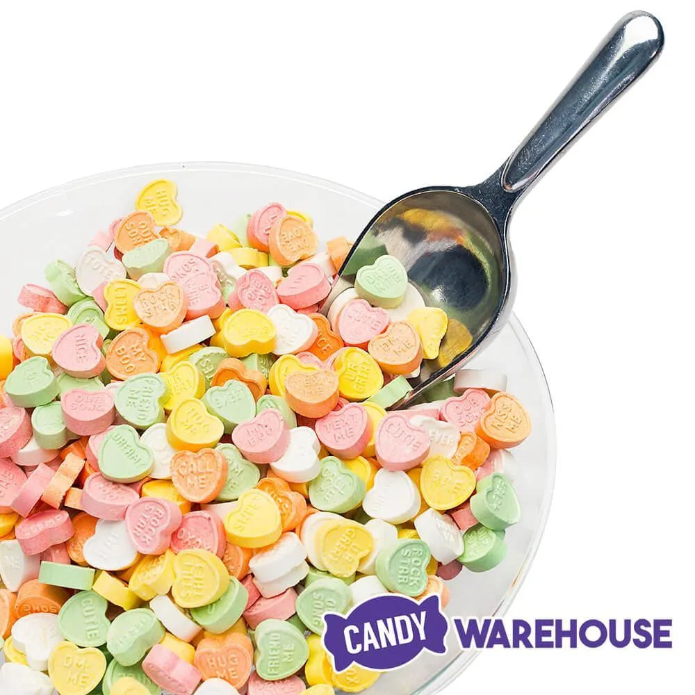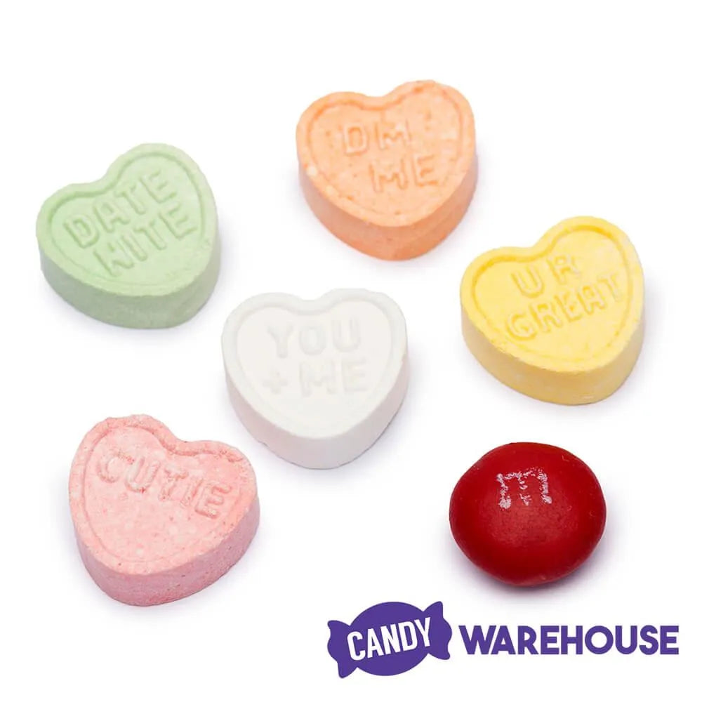 Diminutive in size, but large on flavor, these adorable small candy hearts in assorted colors feature romantic phrases printed on every piece. Way sweeter than a post-it note, these treats are the perfect way to say "I Love You" in lots of little ways. Classic flavors include apple, banana, cherry, grape, orange and sweet mint.