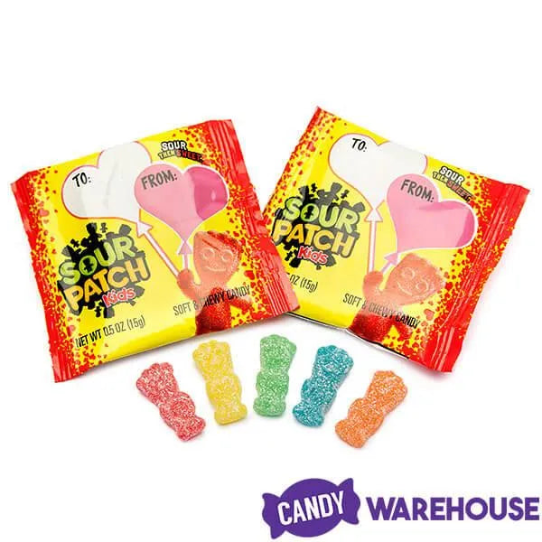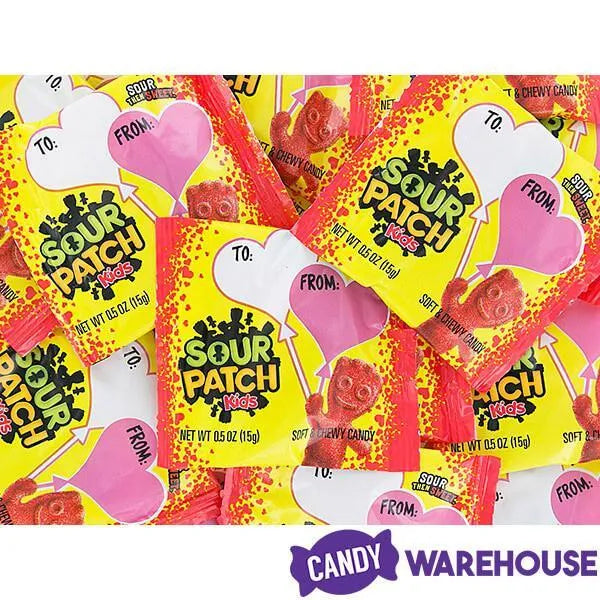 Frisky and precocious, these romantic Valentine Sour Patch Kids Candy Packs make the perfect treats for the holiday of love! Each pack includes a To: and From: area for indicating your intentions of romance with the perfect combination of sour and sweet fruity taste sensations. Stock the Valentine's Day candy dish at your home or office with delicious Sour Patch Kids that are sure to surprise and delight with every tender bite!