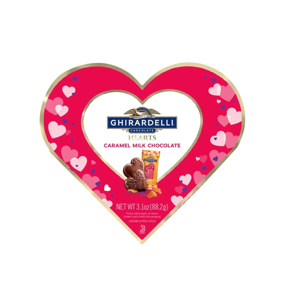 Ghirardelli Caramel Milk Chocolate Hearts Gift Box: 6-Piece Case