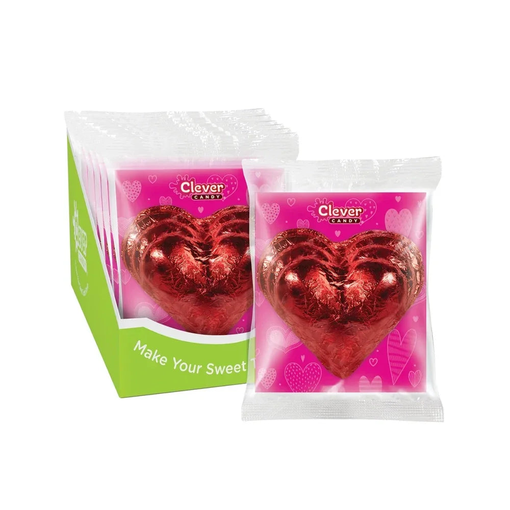 Clever Candy Red Foil Solid Milk Chocolate Heart: 18-Piece Case