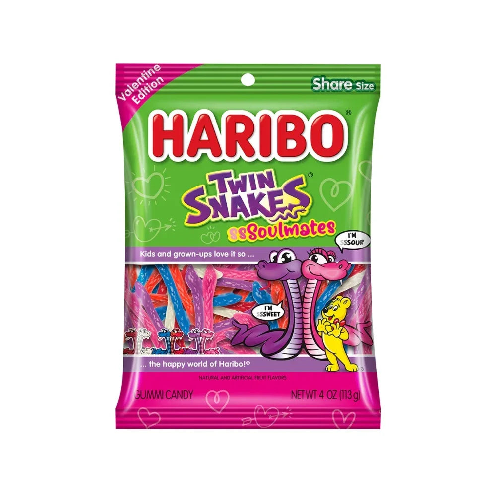 Haribo Twin Snakes Soulmates Gummy Candy Peg Bags: 12-Piece Case