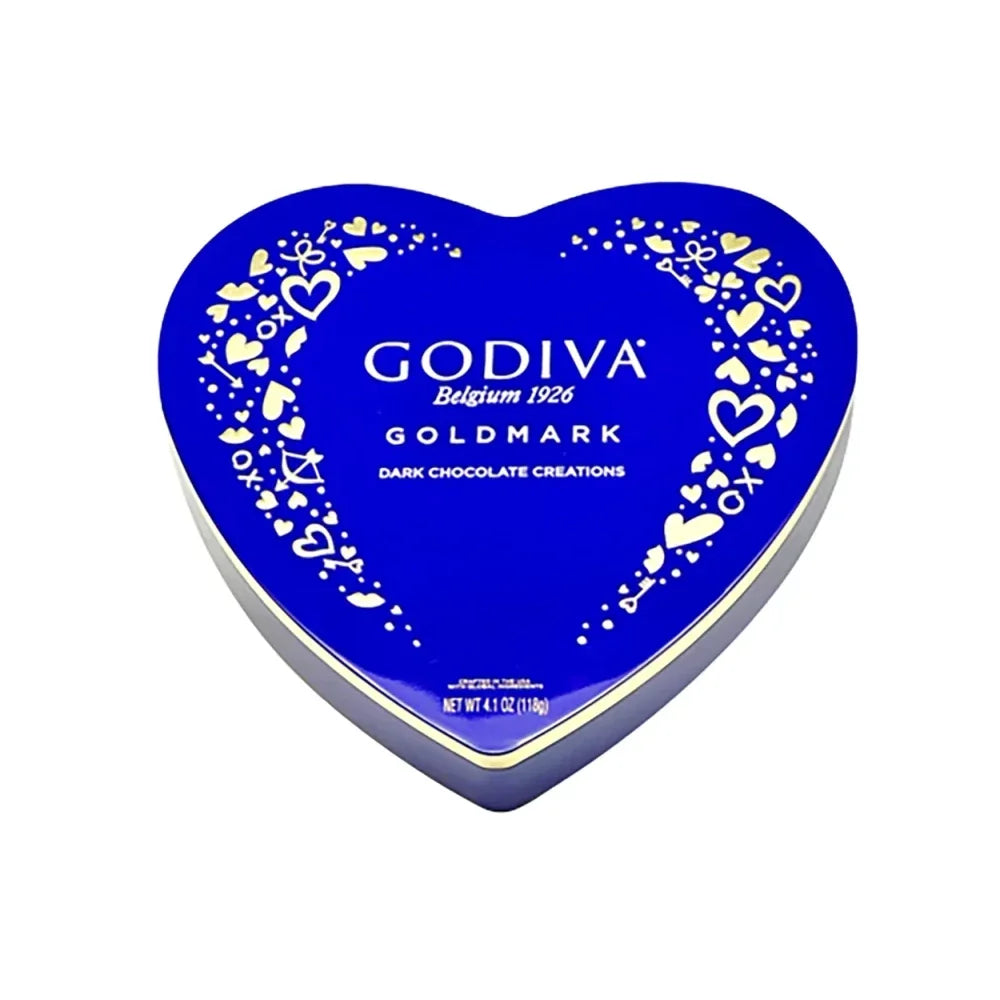 Godiva Goldmark 14-Piece Assorted Dark Chocolate Heart Shaped Tin: 6-Piece Case