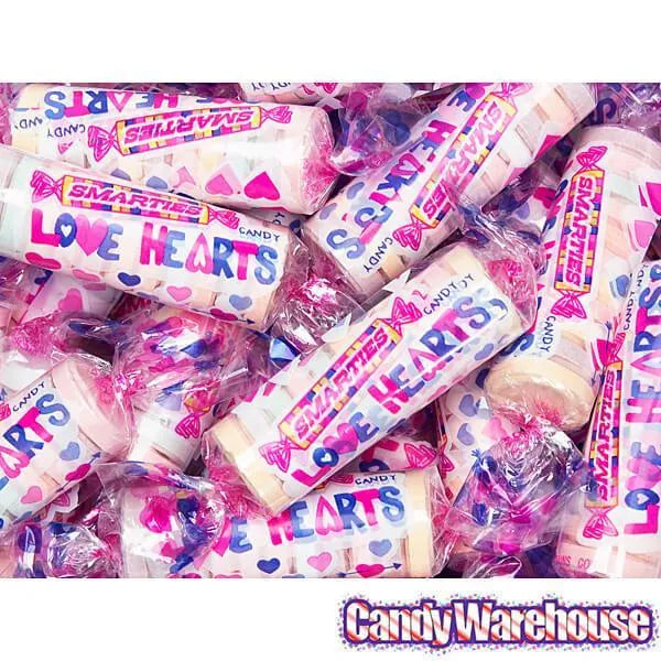 Bag contains 5 pounds of Smarties Love Hearts Candy Rolls.