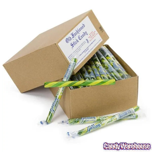 Box contains 80 wrapped Lime Gilliam Old Fashioned Hard Candy Sticks.