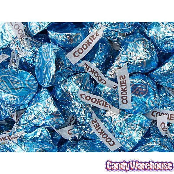 Bag contains 10 ounces of Blue Hershey's Kisses Cookies 'n' Creme Candy... that's about 70 pieces.