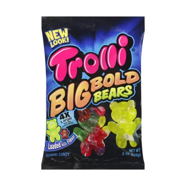 Box contains 3.75 pounds of Trolli Big Bold Gummy Bears Candy packed in 12 bags, each with a net weight of 5 ounces.