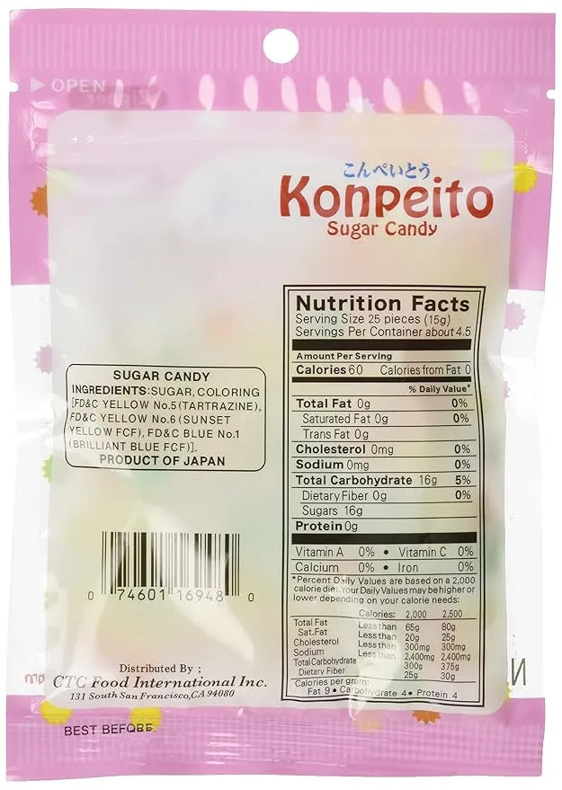 Case contains 24 Konpeito Hard Candy Prickly Balls Peg Bags, each with a net weight of 2.46 ounces!