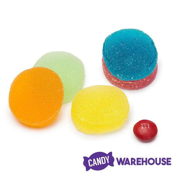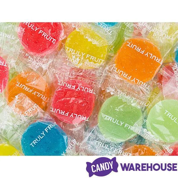 Tub contains 100 pieces of Truly Fruit Soft Jells Candy Discs.