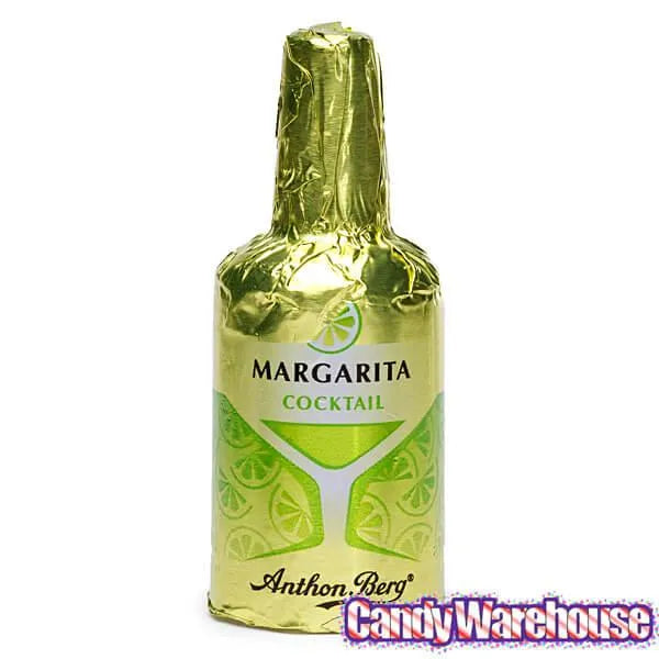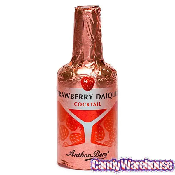 Decadent dark chocolate is formed into hollow bottle shapes and filled with genuine brand name spirits in liquid centers. Each bottle is wrapped with elegant metallic foil representing the liquor brand inside the chocolate. A patented process is used to prevent the liqueurs from leaking; lesser chocolates are lined with sugar to prevent leaking, which can ruin the taste of the liqueurs. Assortment includes four alcoholic beverage favorites: