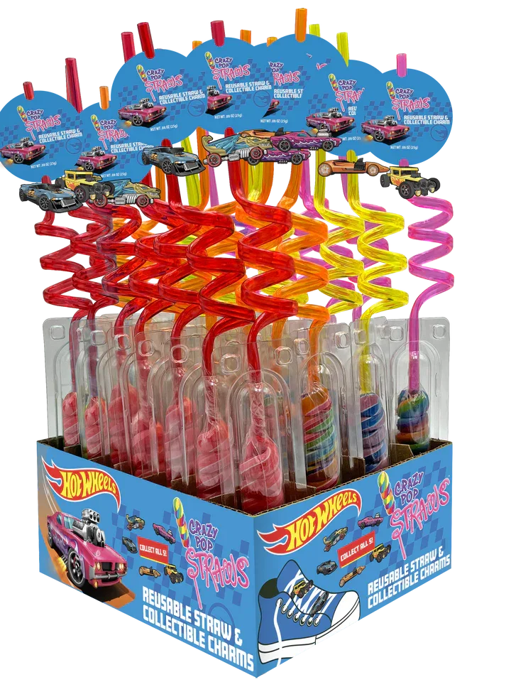 Hot Wheels Crazy Lollipop Straws: 30CT Display