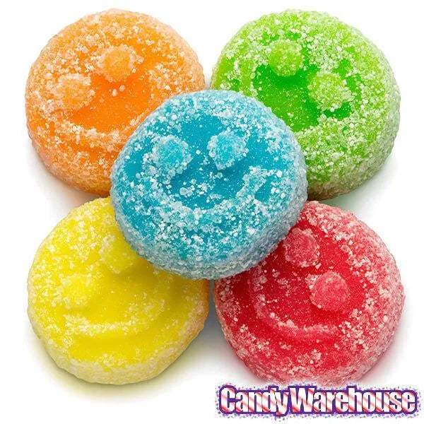The perfect bite-size chewy gummy pieces for popping into your mouth for a perky sour burst! A smiley face is embossed on every piece.