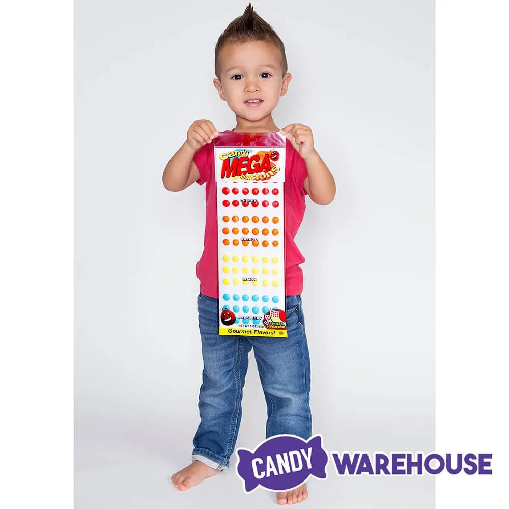 Case contains 24 3 ounce sheets of Mega Candy Buttons... 72 buttons per sheet.
