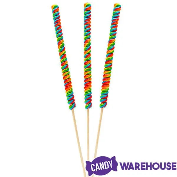 Box contains 12 wrapped Rainbow Swirl Tremendously Tall Twist Pops.
