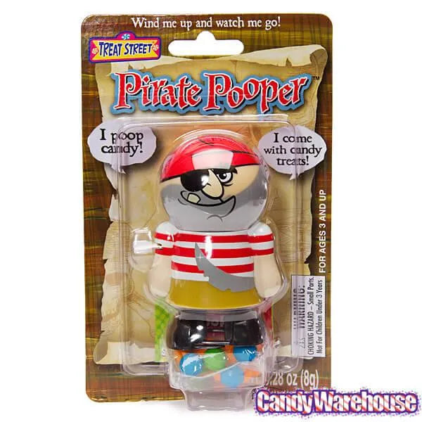 With their surly grins and eye patches, these mateys are certain to strike fear into the hearts of maidens and noblemen alike. Wind them up and watch as they pillage, plunder, and poop across any flat surface! Then just scoop up their droppings and pop them in your mouth… ye be eatin’ better than ye e’er be before! (Did we mention they only excrete round, colorful pieces of candy? Way tastier than grog -- eat up, me hearties, yo ho!)
