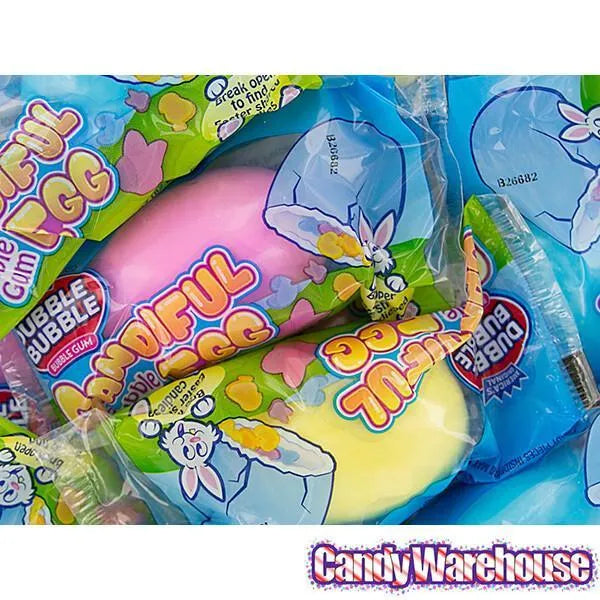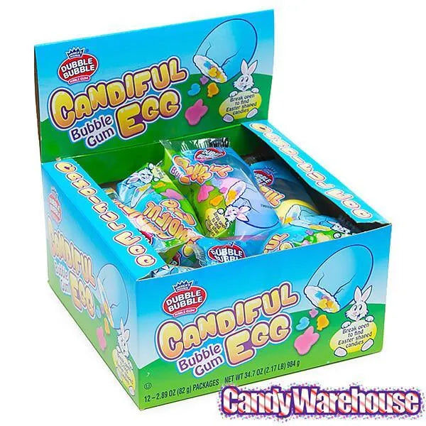 Display box contains 12 individually wrapped Dubble Bubble Giant Candiful Bubble Gum Eggs.