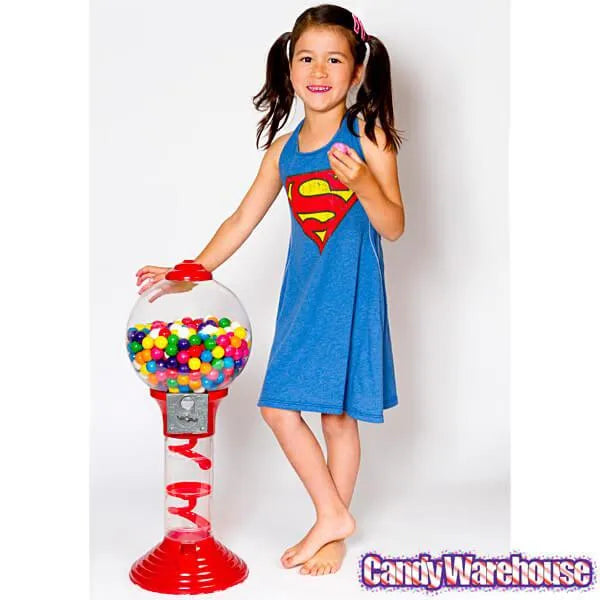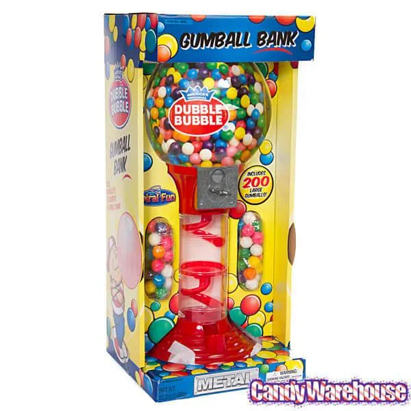 Throughout the years, these machines have evolved into many shapes and sizes, but the most important characteristic hasn’t changed: they always dispense round, delicious, chewy gumballs! This fun, metal spiral gumball machine bank stands two feet tall, with a clear plastic globe through which to view the gumball selection, and a clear base to watch as the the round candy rolls down colorful metal spirals! As they say, getting there is half the fun -- well, so is watching swirling gum!