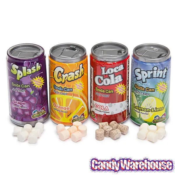 Pop open the fun with Kidsmania Soda Can Fizzy Candy! These miniature, resealable soda cans are packed with tiny fizzy candies that taste just like your favorite soda flavors—Orange, Lemon Lime, Grape, and Cola. As soon as they hit your tongue, they fizz and bubble, giving you a refreshing, soda-like experience in candy form!