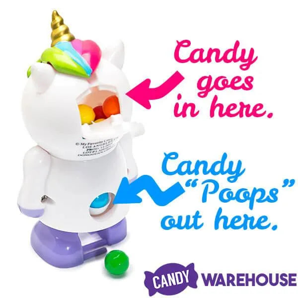 Discovered roaming around magical meadows, these Unicorn Candy Poopers dispense sweet and delicious doo doo when you wind them up and let them go. Just load them up with the included colorful candy balls and the hilarity will soon ensue. Sure to provide 'loads' of laughs at any unicorn themed party or event, Unicorn Candy Poopers make a great addition to goody bags or as party game prizes.
