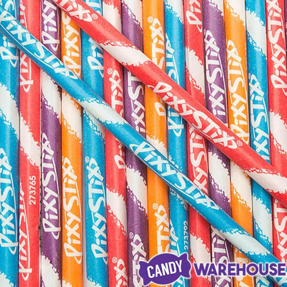 Get your instant grat sugar fix in seconds when you open Pixy Stix powder candy straws and pour them onto your eager tongue. This classic sweet and sour powdered candy has been tantalizing taste buds for decades. Use these recognizable retro candies to bring back fond childhood memories at fundraisers, hand them out as throwback trick-or-treat sweets, or add them to Easter baskets where they add bold color and eye-catching variety. Each mouthwatering flavor of the iconic sugar straw candy matches the wrapper color, with grape, orange, cherry, and blue raspberry all included in this 100 piece bag. You get an explosion of tongue-puckering, tangy-sweet fruit flavor in every straw, so open up and say “Aaahhhhh.”